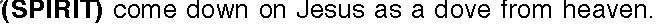 Matthew 3:16-17 When Jesus came up out of the water, the heavens opened. He saw the Spirit of God coming down and resting on Jesus like a dove. A voice was heard from heaven. It said "This is my much-loved Son. I am very happy with Him".